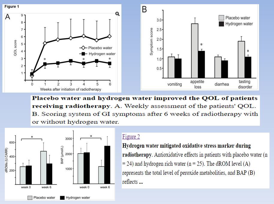 Medical studies and scientific research have indicated that consumption of molecular hydrogen and specifically Hydrogen Water can provide a better quality-of-life for people who are being treated with radiation, without diminishing the effectiveness of radiation against cancerous cells.